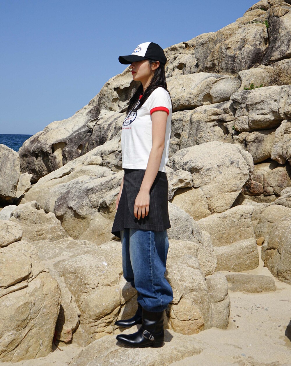 20수 면으로 탄탄한 조직감과 네크라인,소매 립 디테일이 들어간 링거 티셔츠