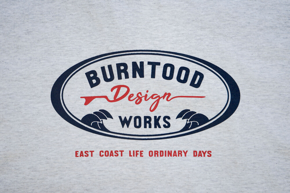파도와 서핑보드의 일러스트가 그려진 엠블럼 나염