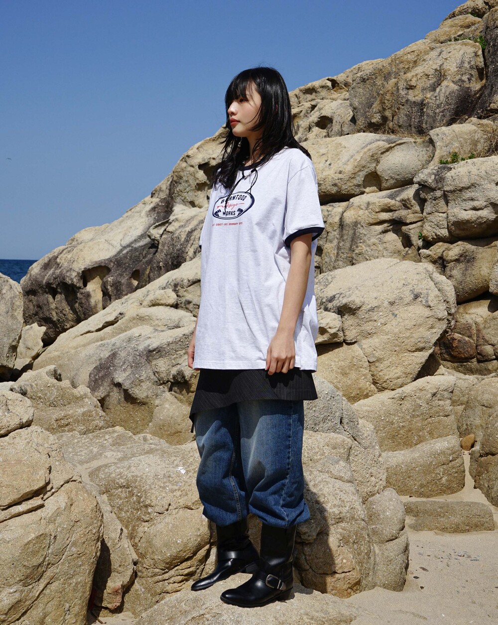 20수 면으로 탄탄한 조직감과 네크라인,소매 립 디테일이 들어간 링거 티셔츠